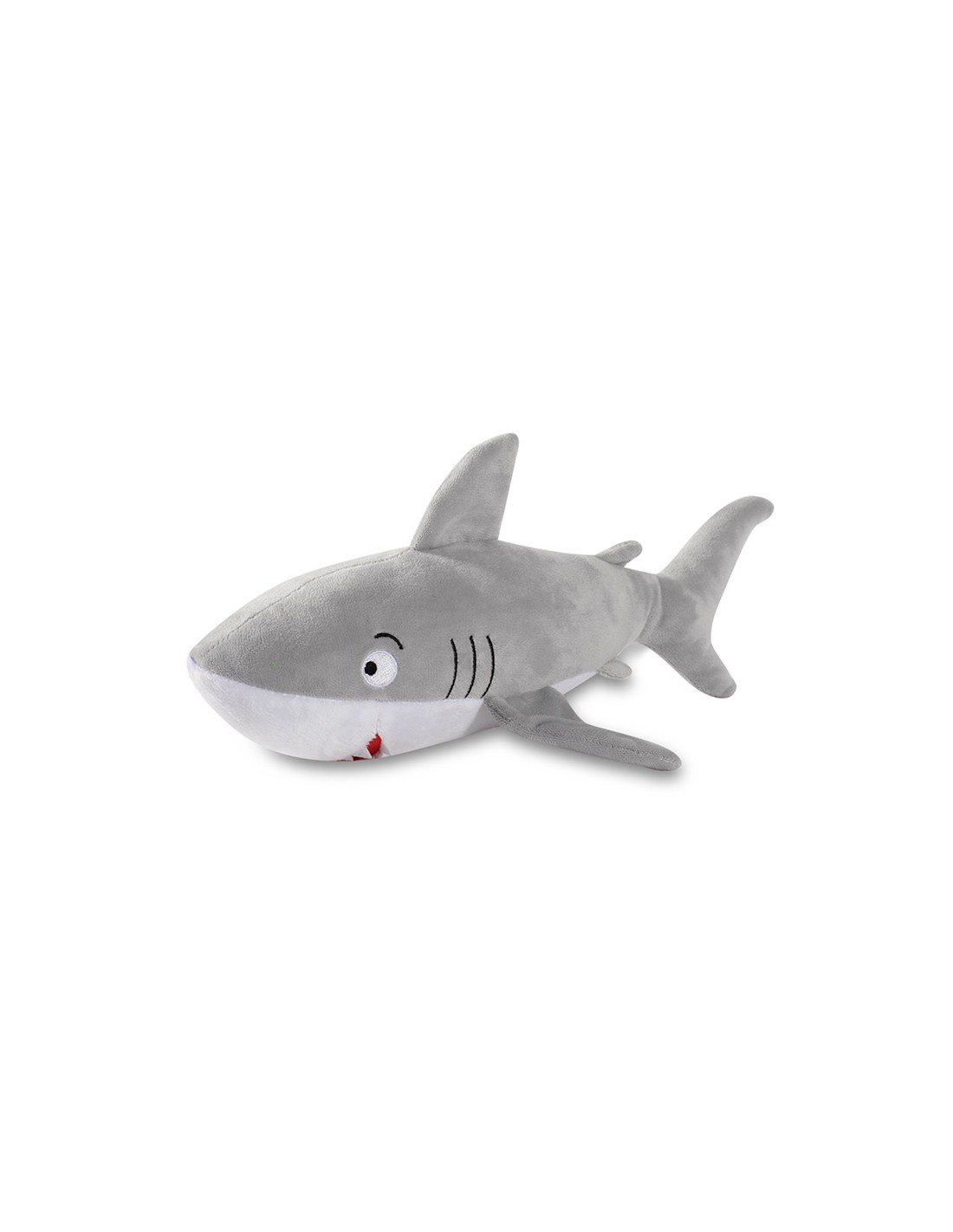 Pluche haai. Extra luide pieper + knisper. Afm. 34x17cm. Per stuk verpakt.