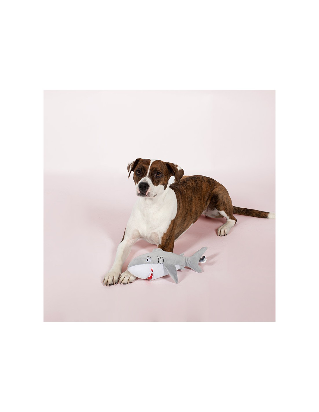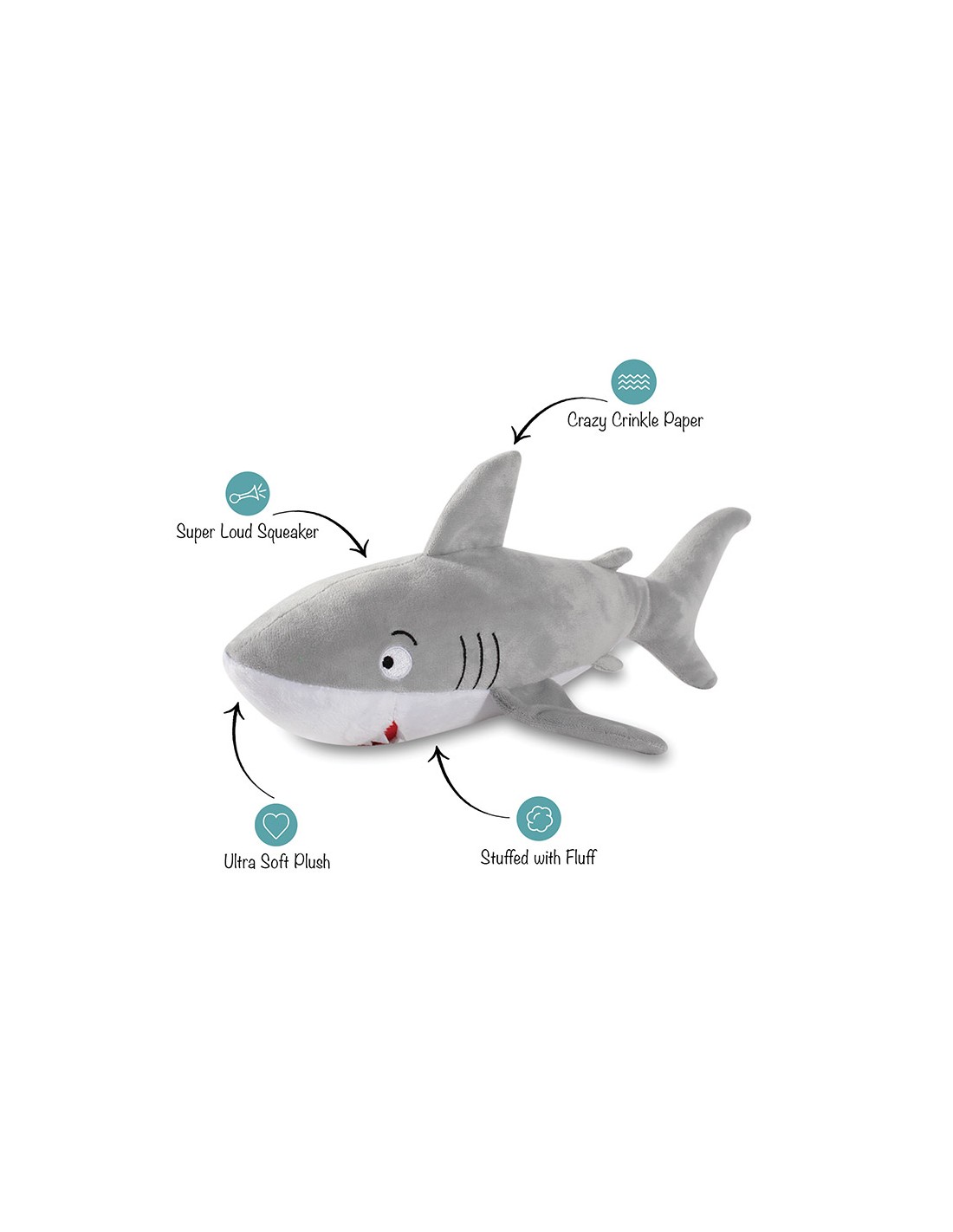 Plush Shark. Extra loud Squeaker + Crinkle Paper. Dim. 34x17cm. Packed per piece.