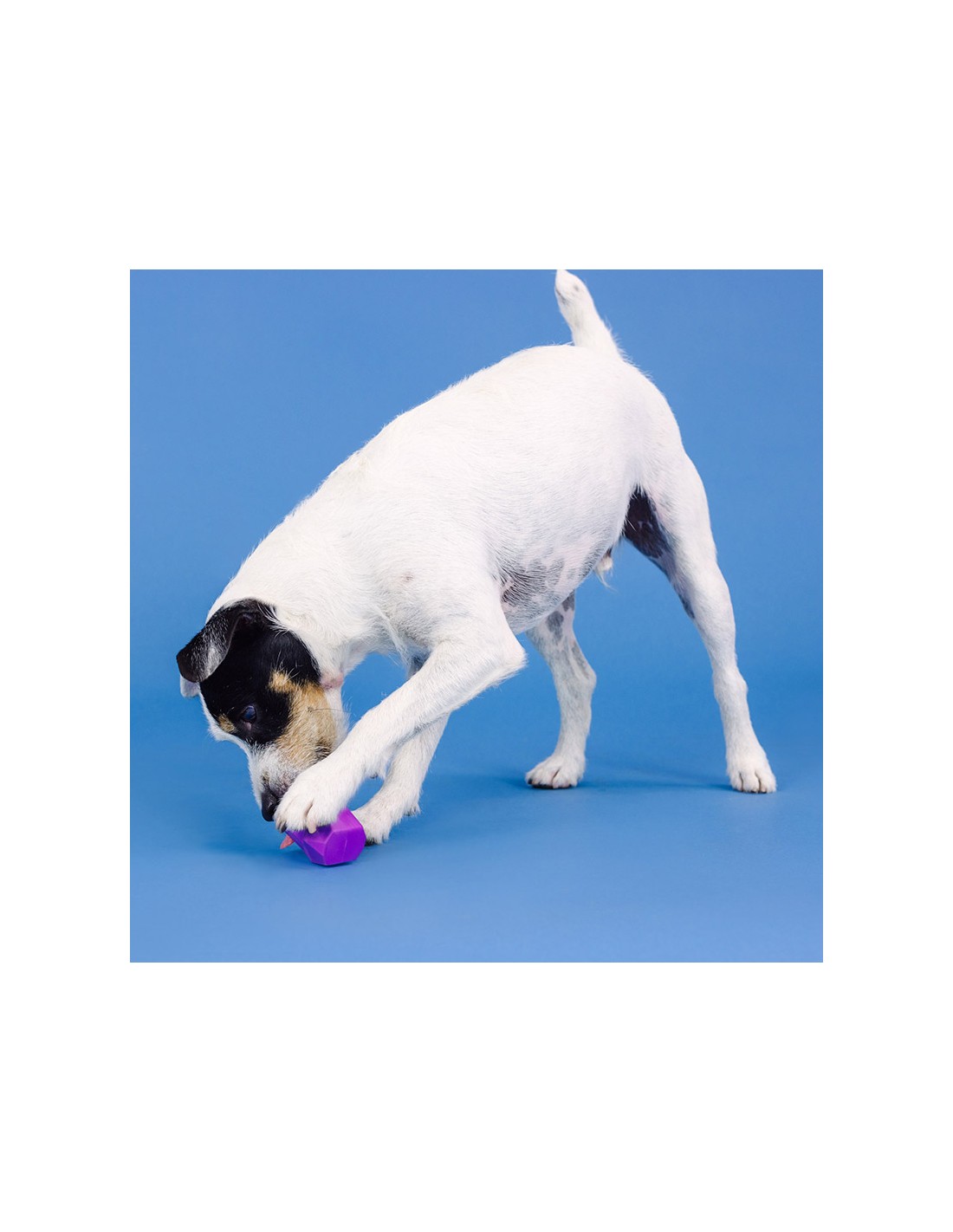 Ready to join the Dura Club? Fringe's "You're Adora-Ball" rubber dog toy in purple is for pups who like to work for their treats, chew and do a lot of retrieving. Made from natural rubber, with a treat dispenser and a whimsical bounce function, this toy is made for long-lasting interactive play. Just fill it with treats and throw it for some fetch fun so your pup is busy trying to get them out. Ideal for small dogs and strong chewers. Dim. 5 x 4.5 cm. Treat dispenser + retrieving + biting + natural rubber + floating + dishwasher safe + freezer safe + irregular bounce. Packed per piece.