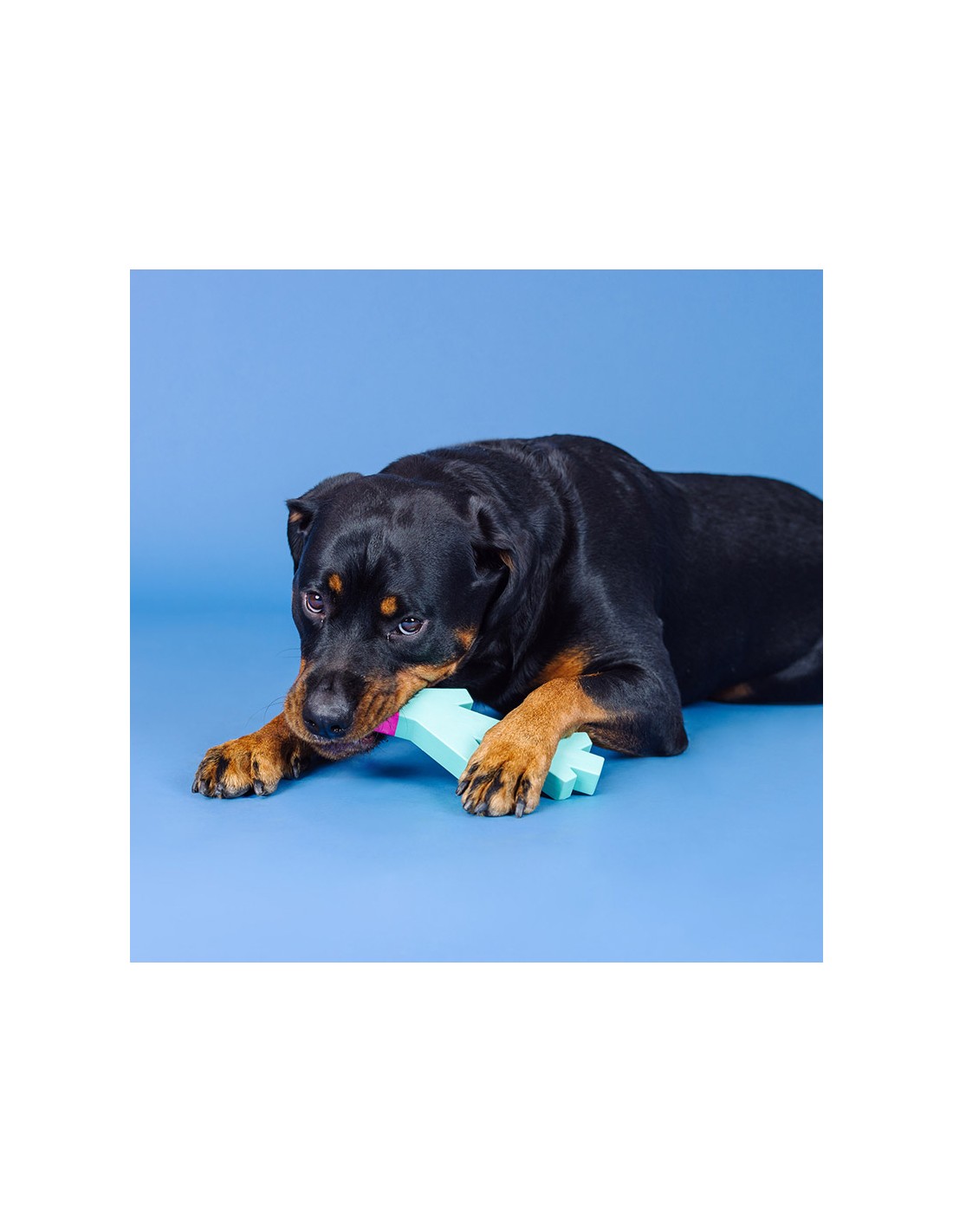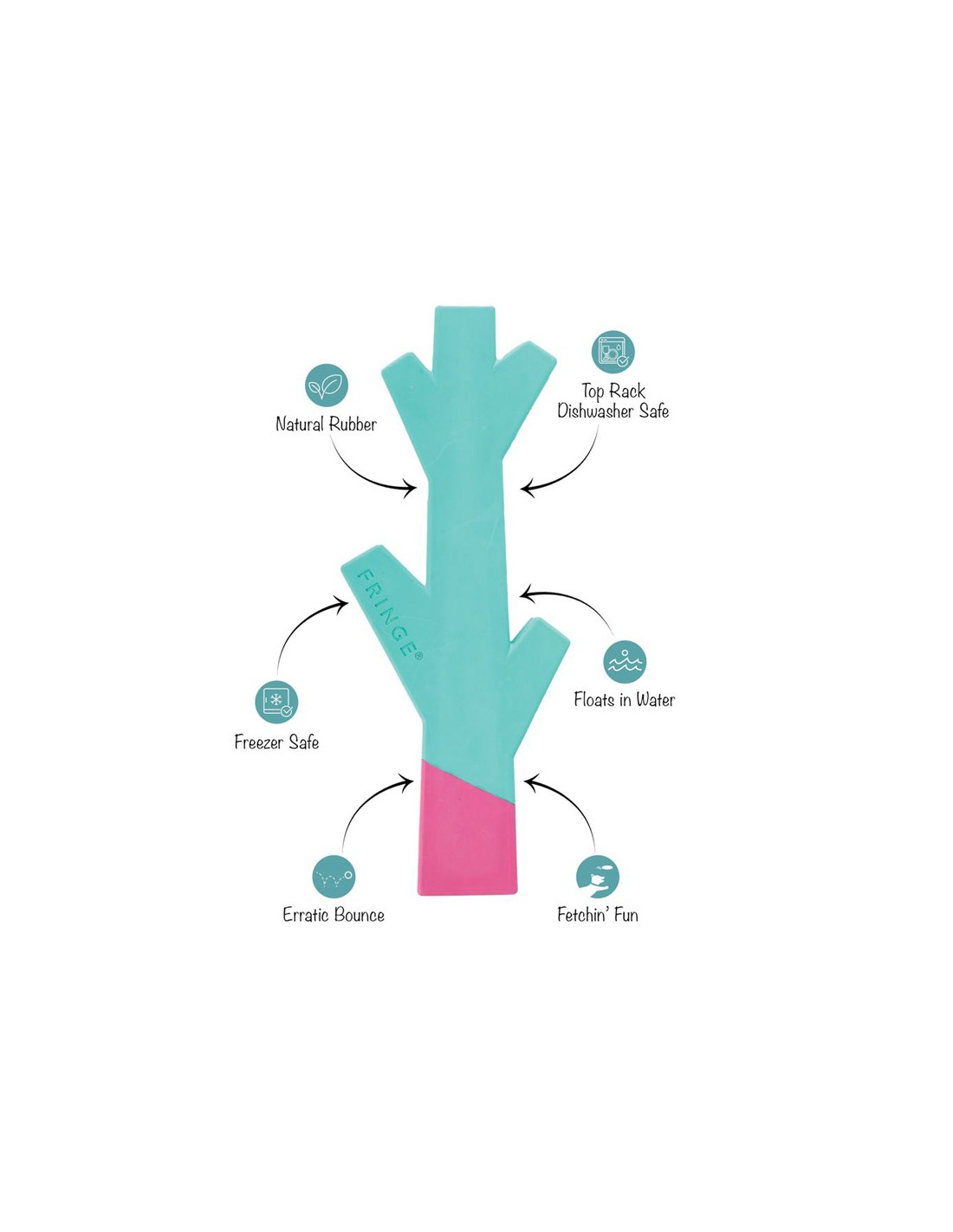 Ready to join the Dura Club? Fringe's "Stick With Me" rubber dog toy in turquoise and hot pink is for pups who like to chew and play fetch a lot. Made from natural rubber, this toy has a whimsical bounce and the ability to float and is made for long-lasting interactive play. Just throw it in the garden, pool or on holiday at the lake for some fetching fun. Ideal for dogs of all sizes and strong chewers. Dim. 23 x 9 cm. Natural rubber + retrieving + pulling + chewing + floating + dishwasher safe + freezer safe + irregular bounce. Packed per piece.