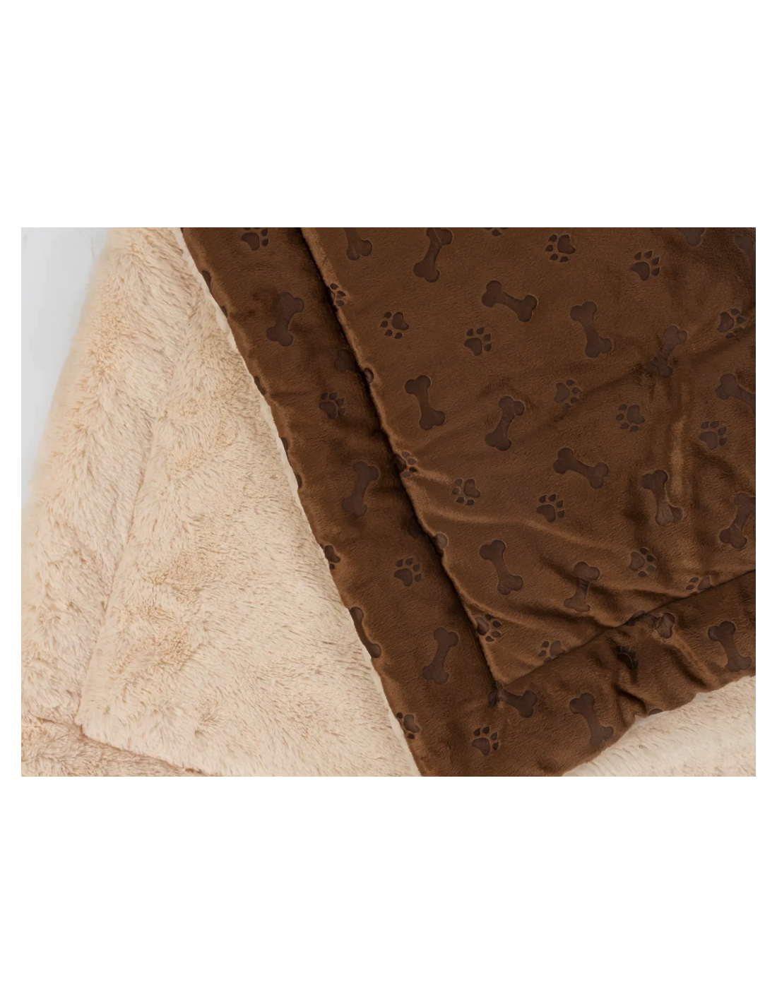 What makes Relax extra nice: it’s double-sided. One side is beige and extra fluffy/soft, the other side is medium brown with cute dog-themed motifs. So customers get a “nice looking” side for the home and a more practical side for everyday use.