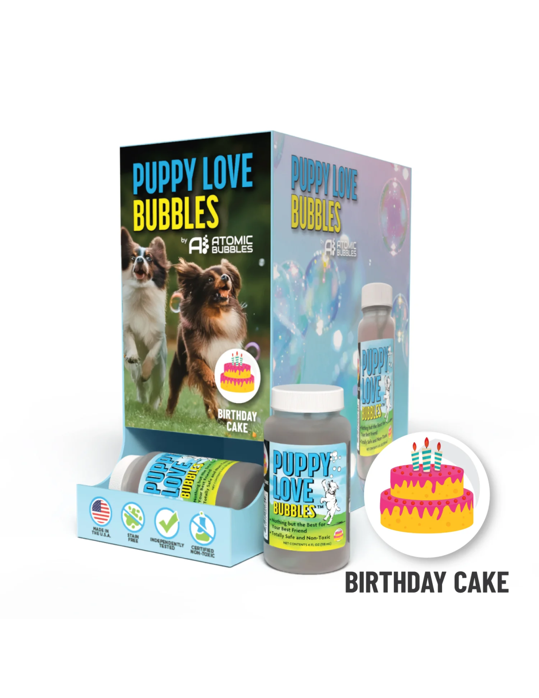 Puppy Love Bubbles: Birthday Cake Scented Bubbles - Gravity Feeder with 12-4oz. Bottles