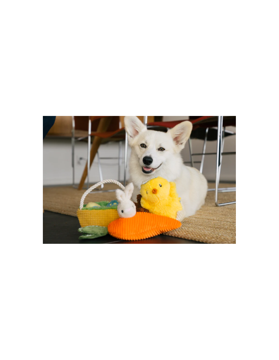 Verras je hond met deze superleuke Hippity Hoppity Toy Collection! Elk hond zal het leuk vinden om te proberen deze twee grappige konijntjes te vangen vanuit het wortelspeeltje, op paaseierenjacht te gaan om hun Egg-cellent Basket te vullen, en het is fantastisch om je hond te zien spelen met het Chick Me Out speeltje.