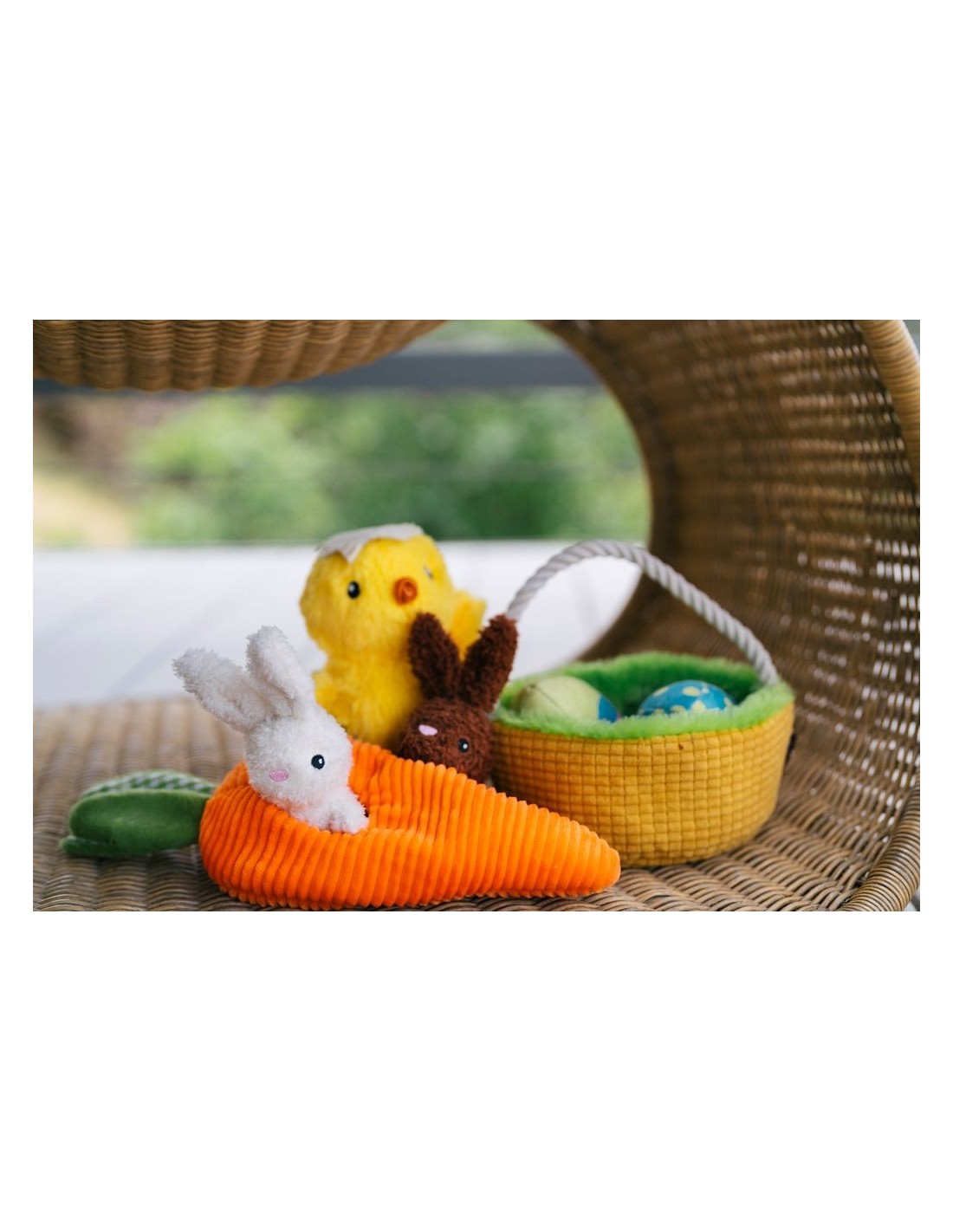 Verras je hond met deze superleuke Hippity Hoppity Toy Collection! Elk hond zal het leuk vinden om te proberen deze twee grappige konijntjes te vangen vanuit het wortelspeeltje, op paaseierenjacht te gaan om hun Egg-cellent Basket te vullen, en het is fantastisch om je hond te zien spelen met het Chick Me Out speeltje.