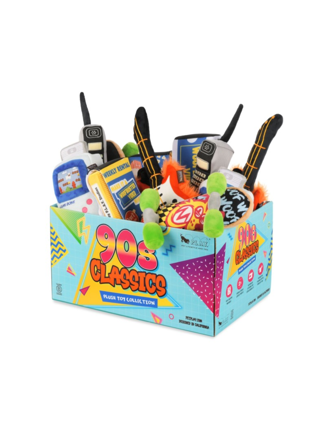 In de 90s Classic collectie zitten hoogwaardige knuffels voor huisdieren met een 90s thema, ontworpen om duurzaamheid en speelplezier te bieden. De collectie omvat diverse speeltjes geïnspireerd op verschillende aspecten van de 90s, wat het zowel aantrekkelijk maakt voor huisdieren als voor hun eigenaren.