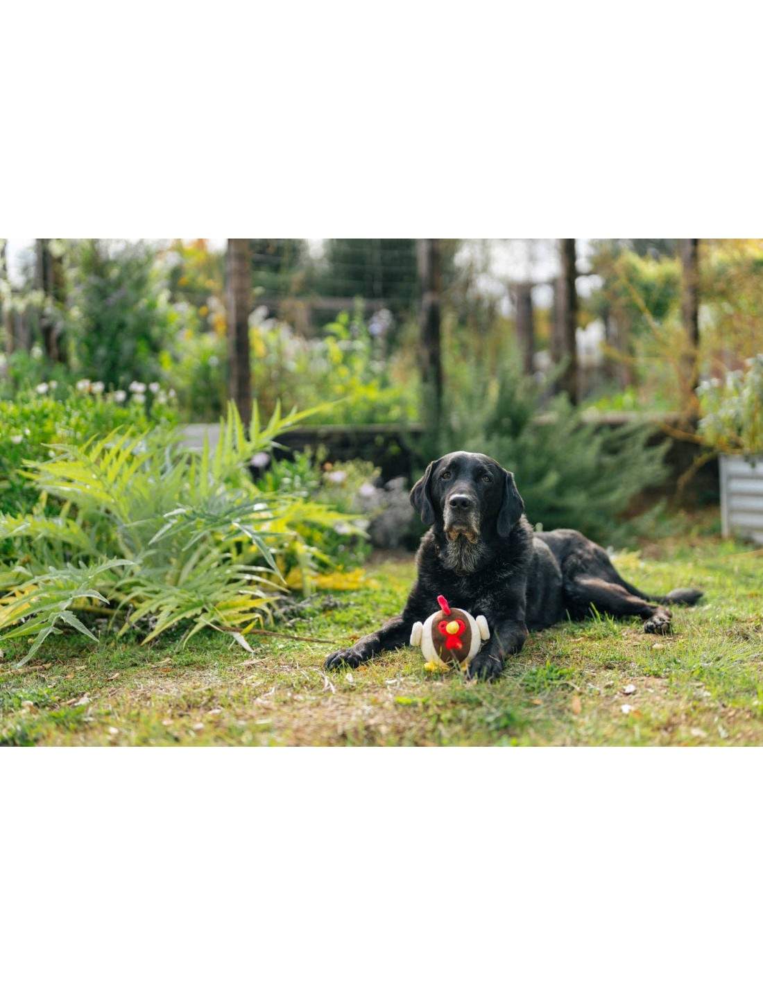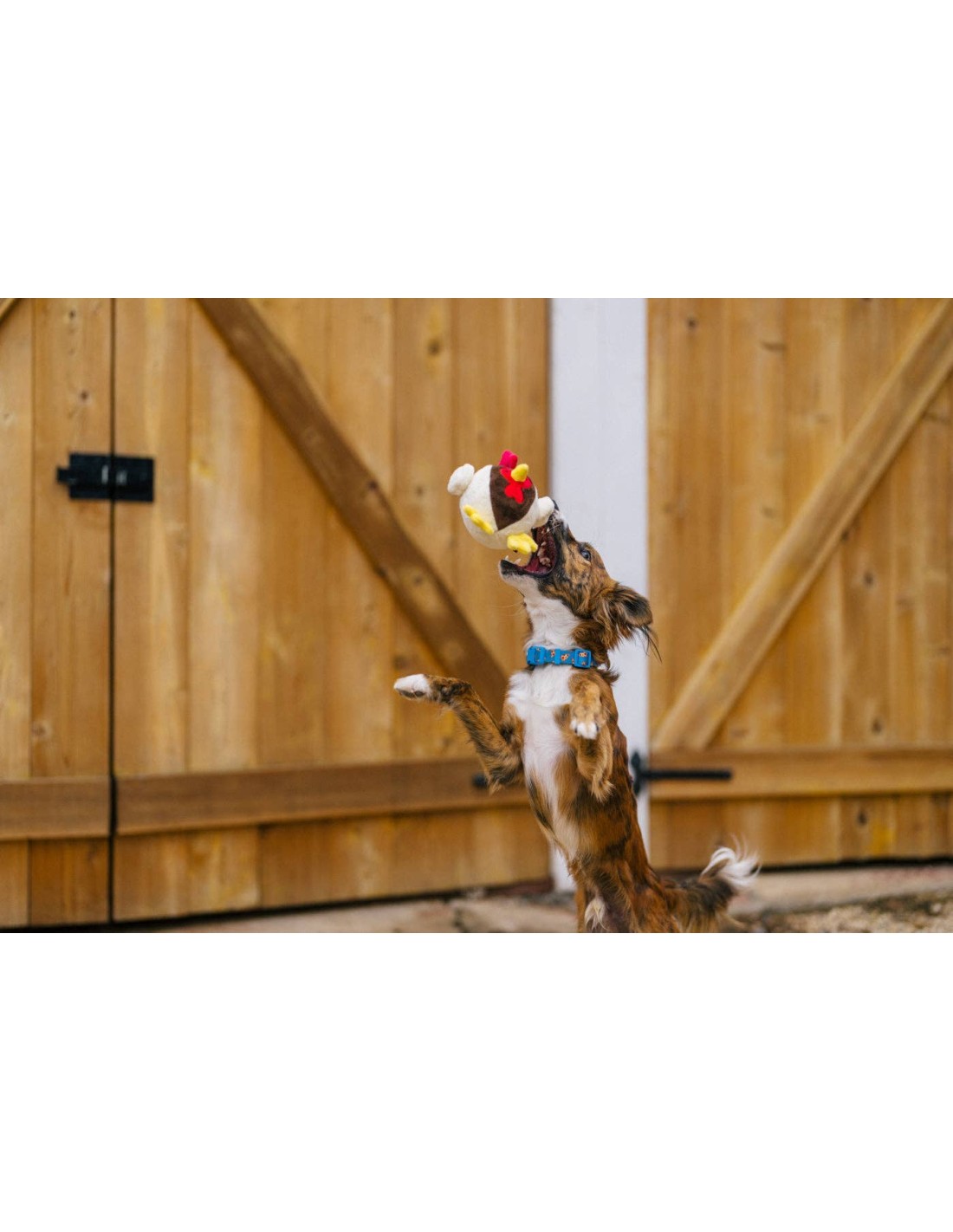 P.L.A.Y.’s Barnyard Buddies Ryan the Rooster toy is always ready to ruffle some feathers! Snuggly on the outside but packs a hidden surprise—a spiky squeaker ball inside for double the fun! Whether your pup loves to snuggle or shake things up, Ryan is the perfect mix of cozy and exciting. And even if playtime gets a little ‘ruff’, the fun keeps going with a bonus toy to chase and chomp. This rooster is sure to be a barnyard favorite! * Built-in bonus toy: A spiky squeaker ball is hidden inside—only revealed when the outer plush is chewed through, giving your pup a surprise second toy for even more tail-wagging fun! * Hand-made craftsmanship, double layer exterior, and reinforced stitching for extra durability * Eco-friendly PlanetFill® filler is made from 100% post-consumer certified-safe recycled plastic bottles * Machine washable and dryer friendly * Features AZO-free dyes * All of our toys meet the same strict quality standards for manufacturing infant and children products.