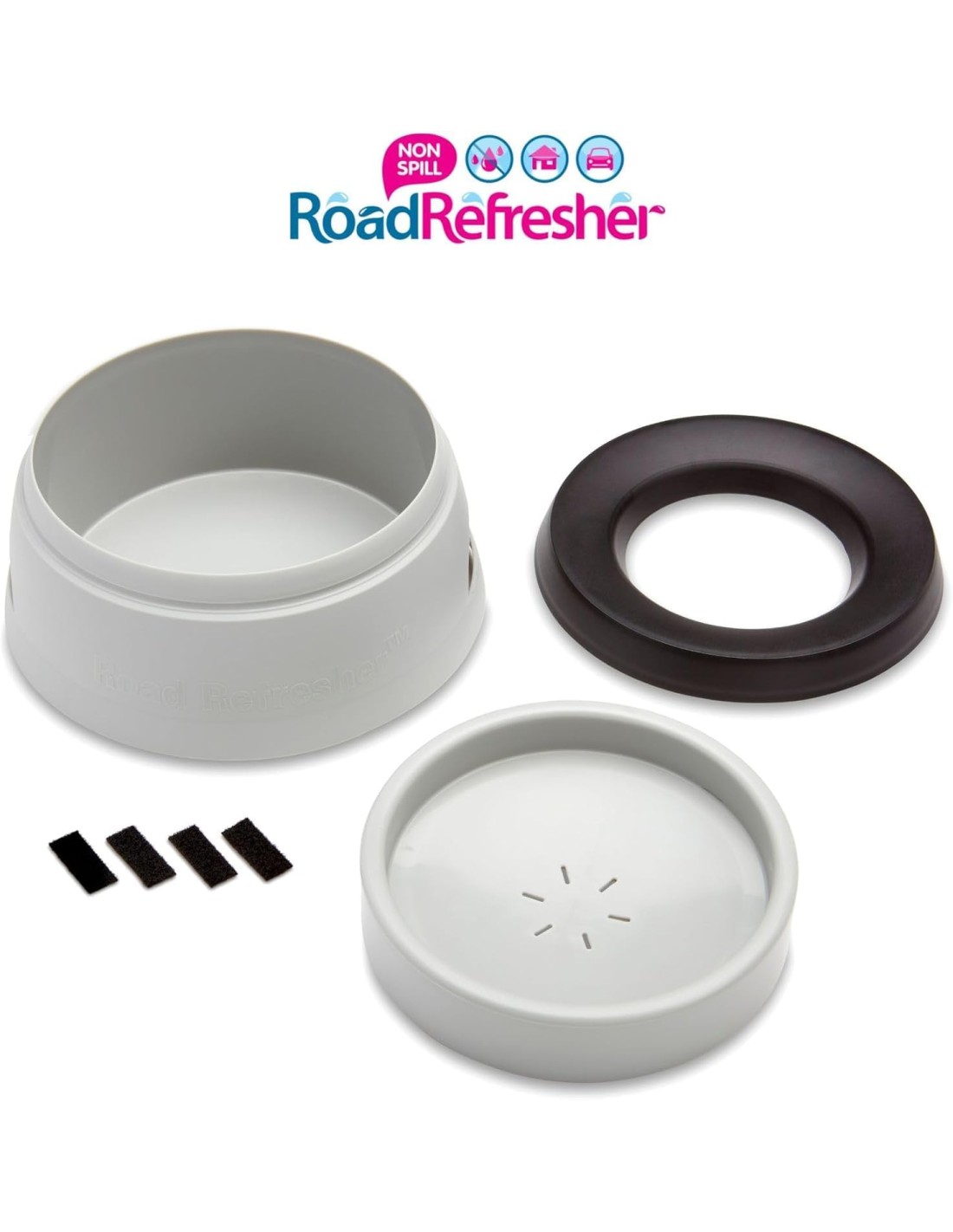 Le Road Refresher™ est une gamelle anti-éclaboussures intelligente qui réduit fortement les renversements et les éclaboussures. Idéale à la maison, en voiture et en déplacement. Grâce à la plaque flottante, le chien boit plus calmement et l’eau reste dans la gamelle.