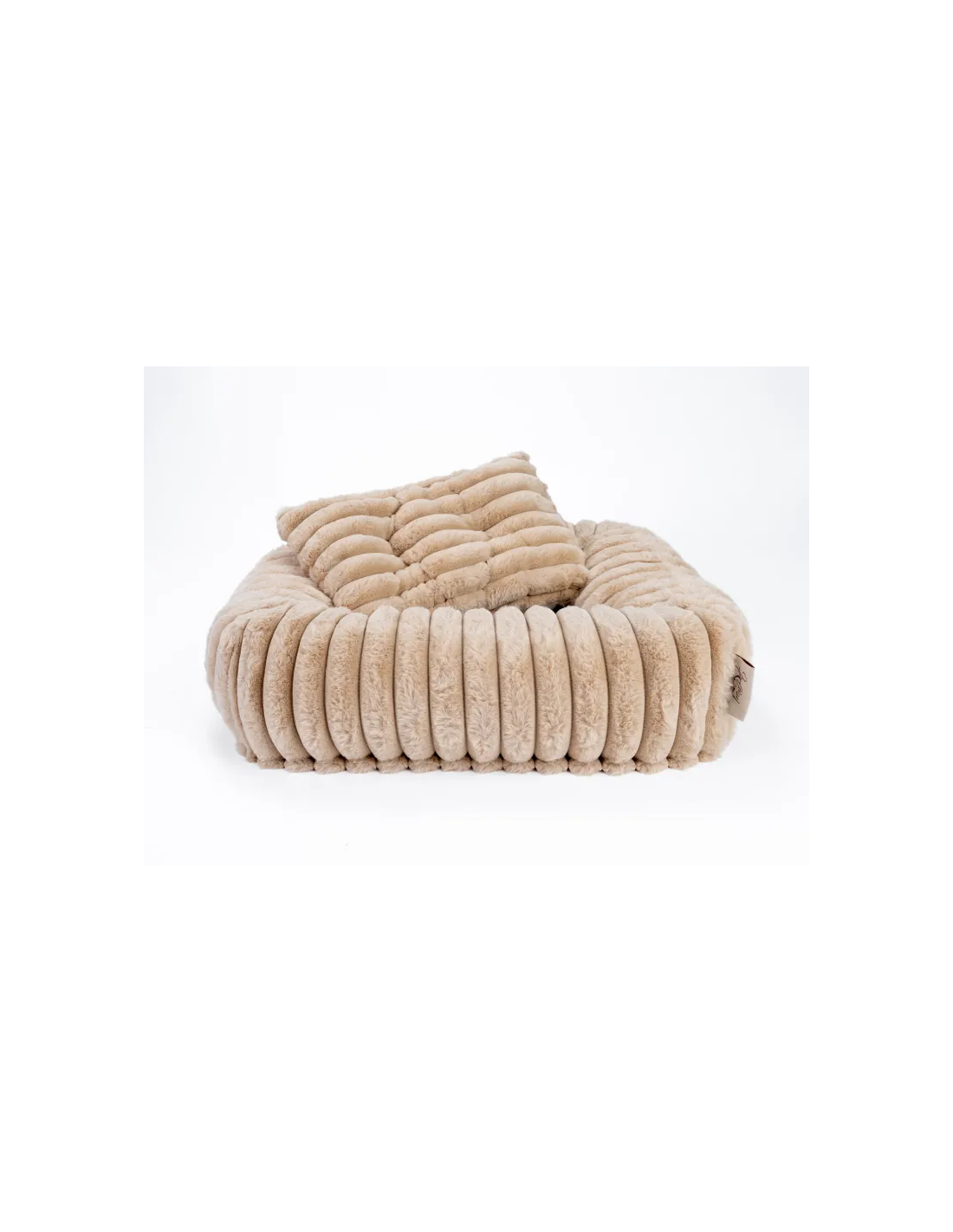 Le Biscuit Cube est un panier rectangulaire ultra doux, avec un rebord extra haut et bien rembourré.