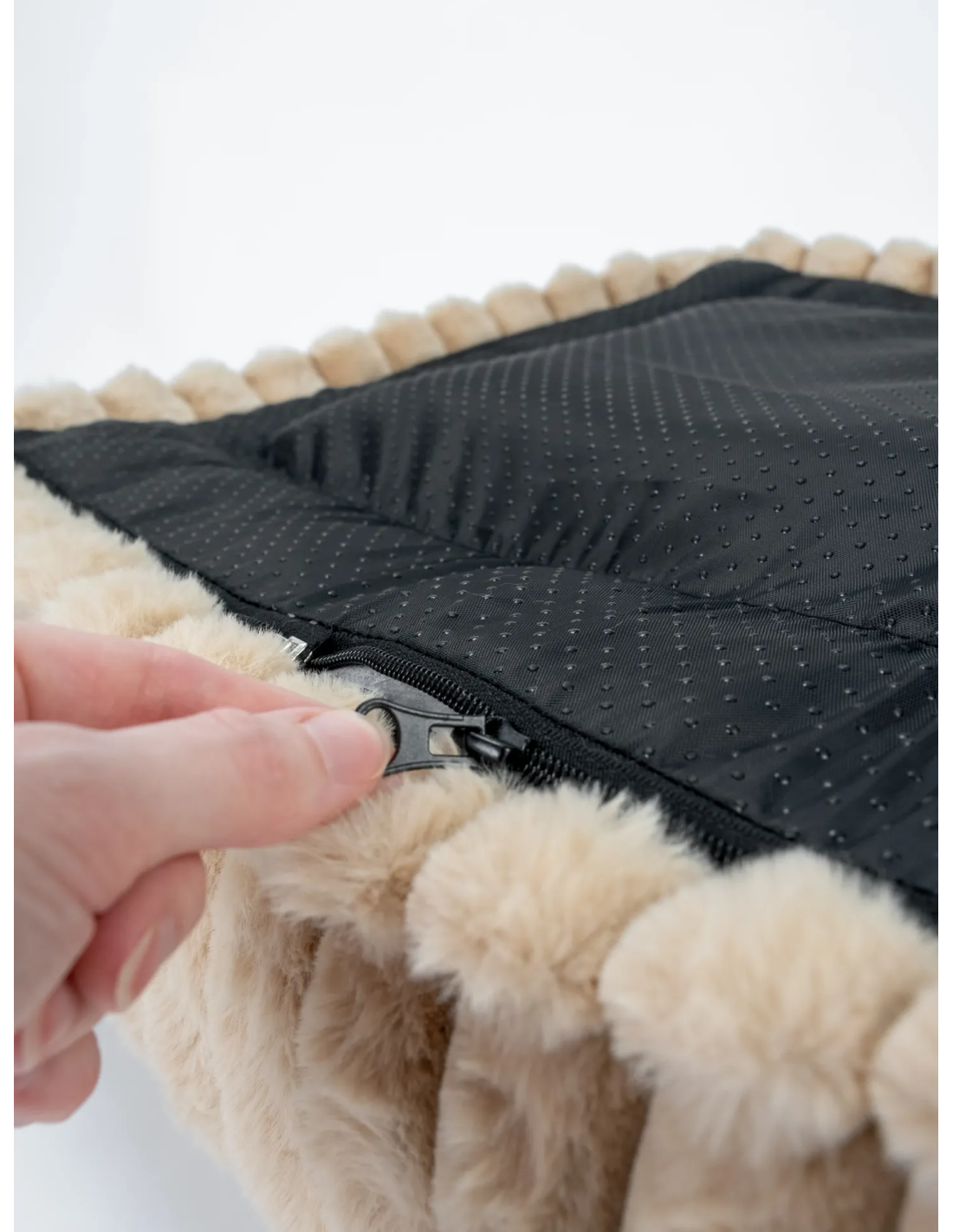 Pratique au quotidien : la housse extérieure est amovible avec une fermeture éclair, lavable à 30°C et passe au sèche-linge. Le coussin intérieur est également lavable. En taille L, la housse du coussin intérieur est amovible avec une fermeture éclair. En tailles S et M, l’ensemble du coussin intérieur peut passer en machine.