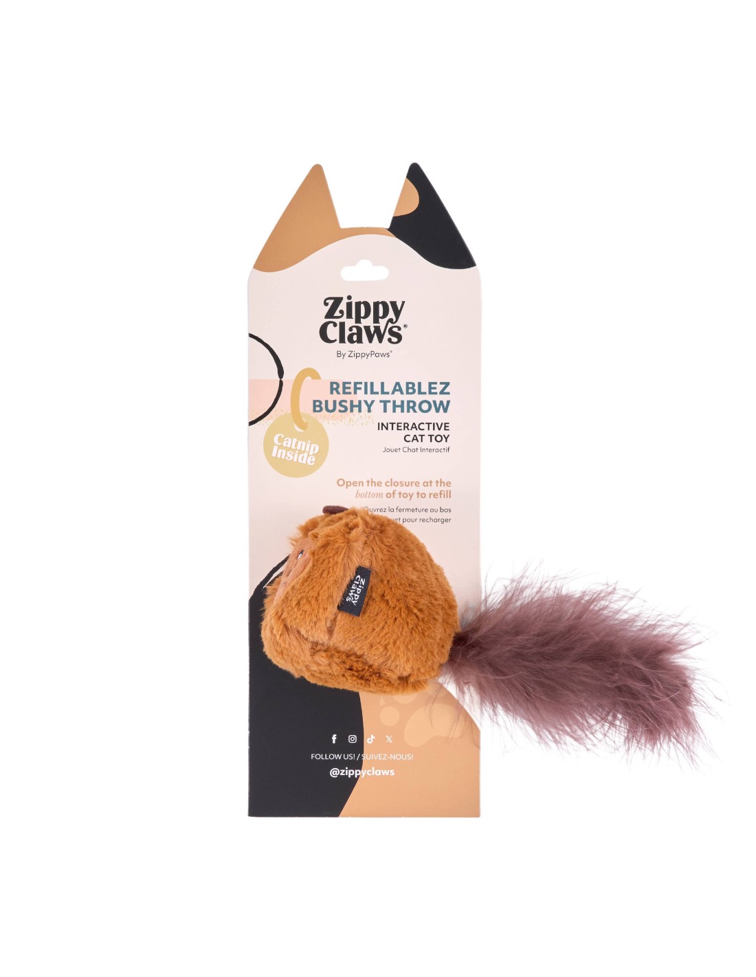 Offrez-vous des moments de jeu frais et amusants avec le jeté touffu ZippyClaws Refillablez ! Version revisitée du jeté touffu ZippyPaws, cette version féline arbore un corps texturé et une queue en plumes. C'est un jouet idéal pour la chasse et il est rechargeable : ouvrez le rabat auto-agrippant pour ajouter de l'herbe à chat préférée de votre chat !
