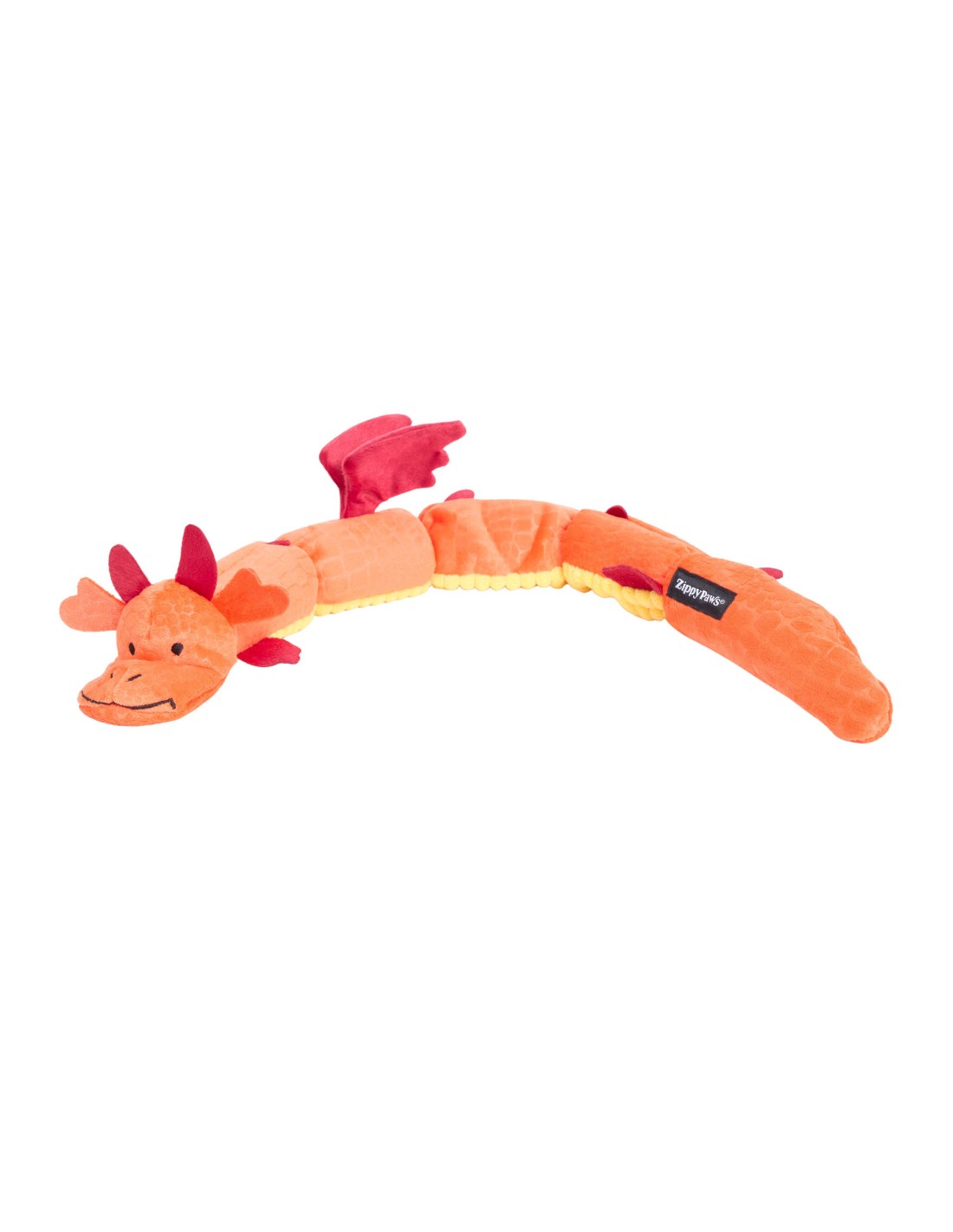 Inspiré de notre célèbre chenille Zippy, voici le majestueux jouet pour chien Zippy Dragonz ! Doté de 5 couineurs blaster dans le corps et d'un couineur rond dans la tête, ce jouet est prêt pour des couinements intenses ! Les jouets pour chien Zippy Dragonz sont dotés d'un tissu écailleux, d'un ventre en velours côtelé, de cornes et d'ailes. Comprend 6 couineurs qui feront craquer votre chien !