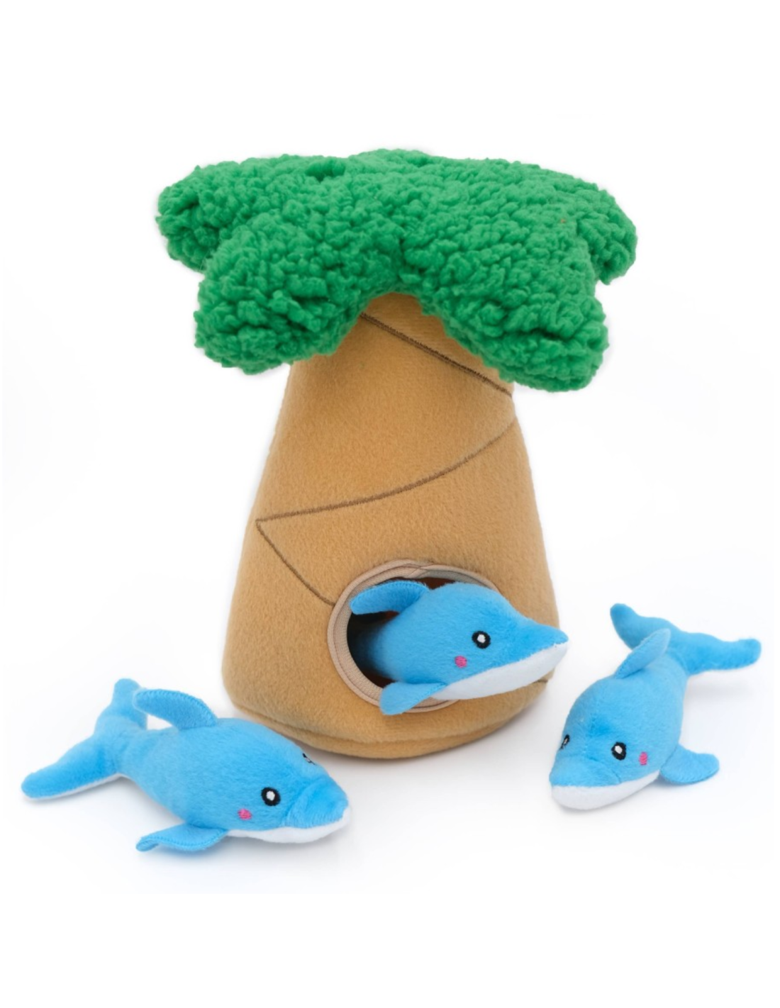Plongez dans un monde de plaisir avec le jouet pour chien Zippy Burrow® Dauphins dans un palmier ! Placez simplement le trio de Miniz dauphins dans le jouet et asseyez-vous confortablement et regardez votre chien plonger pour les trouver tous. Une fois que votre chiot joueur aura sorti tous les Miniz couineurs, il vous suppliera de les remettre dedans encore et encore pour des heures de plaisir ! Les jouets Zippy Burrow® sont le jouet interactif idéal pour occuper et divertir votre chien. Grâce au jeu de cache-cache, les jouets Zippy Burrow™ aident à prévenir l'ennui et favorisent la stimulation mentale ! Ce jouet interactif est livré avec un terrier en palmier et trois petits Miniz dauphins couineurs. * Nous autorisons uniquement les revendeurs agréés à proposer des produits ZippyPaws authentiques, car chez ZippyPaws, nous respectons la qualité de nos produits. Vous devez obtenir une autorisation directe pour revendre tout produit en ligne et accepter de respecter notre politique iMap.