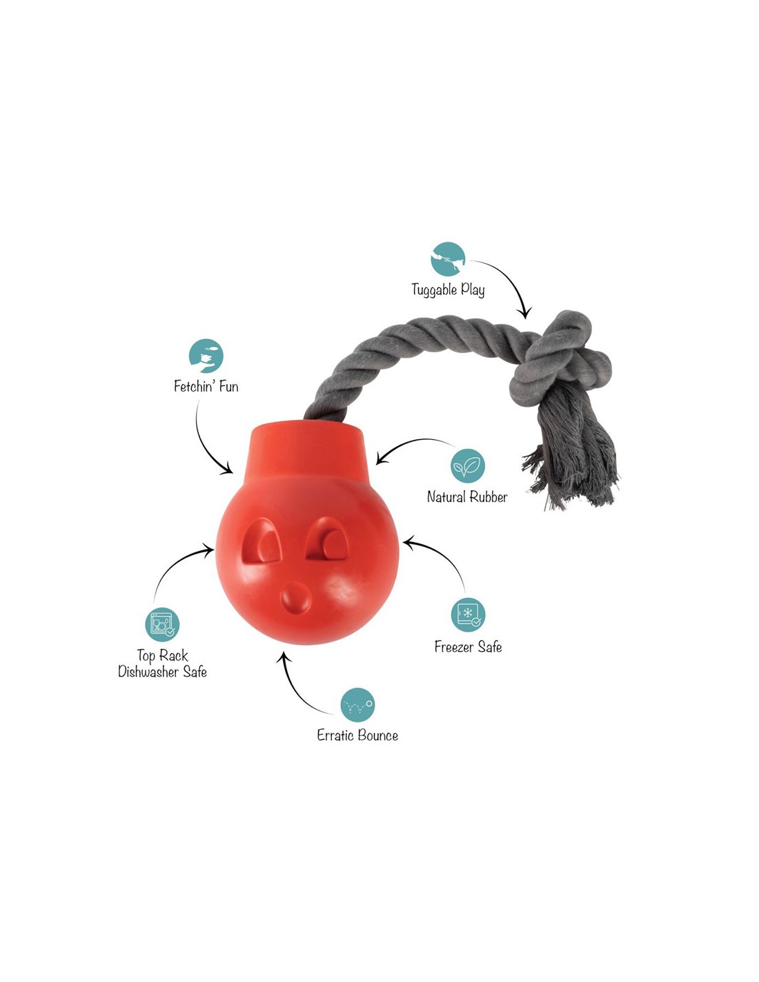 Klaar om lid te worden van de Dura Club? Het rubberen hondenspeelgoed "You Da Bomb" van PetShop van Fringe Studio is voor pups die graag kauwen, trekken en veel apporteren. Dit speelgoed is gemaakt van natuurlijk rubber, een sleepbaar touw en een grillige stuiterfunctie en is gemaakt voor langdurig interactief spelen. Gooi hem gewoon weg voor wat apporteerplezier of houd het ene uiteinde stevig vast terwijl uw pup aan het andere uiteinde trekt. Met zoveel coole functies zal uw pup zich hier prima mee vermaken. Afm. 33 x 9 cm. Natuurlijk rubber + touw + gooien + trekken + kauwen + vaatwasser bestendig + diepvriesbestendig + onregelmatig stuiteren. Verpakt per stuk.