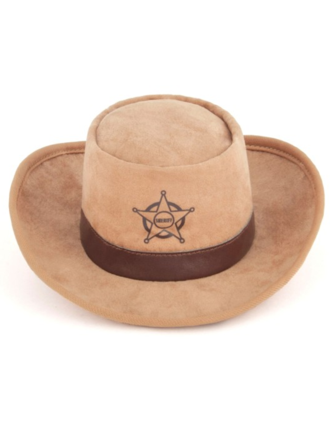 Kijk hoe je pup eindeloos plezier beleeft als hij alle verborgen piepjes en kreukels in dit grappige speelgoed met hoedenthema ontdekt.