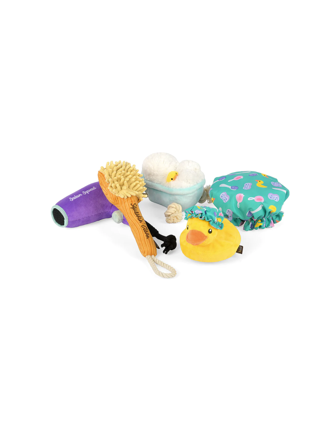 Speel, spoel en herhaal met PLAY's Splish Splash-collectie! Badtijd is altijd beter met een maatje, dus pak Bubbles the Duck en de bijpassende douchemuts voordat je pup in het badspeelgoed duikt. Zorg ervoor dat je extra goed schrobt met de doucheborstel voordat je hun vacht pluist met de föhn!