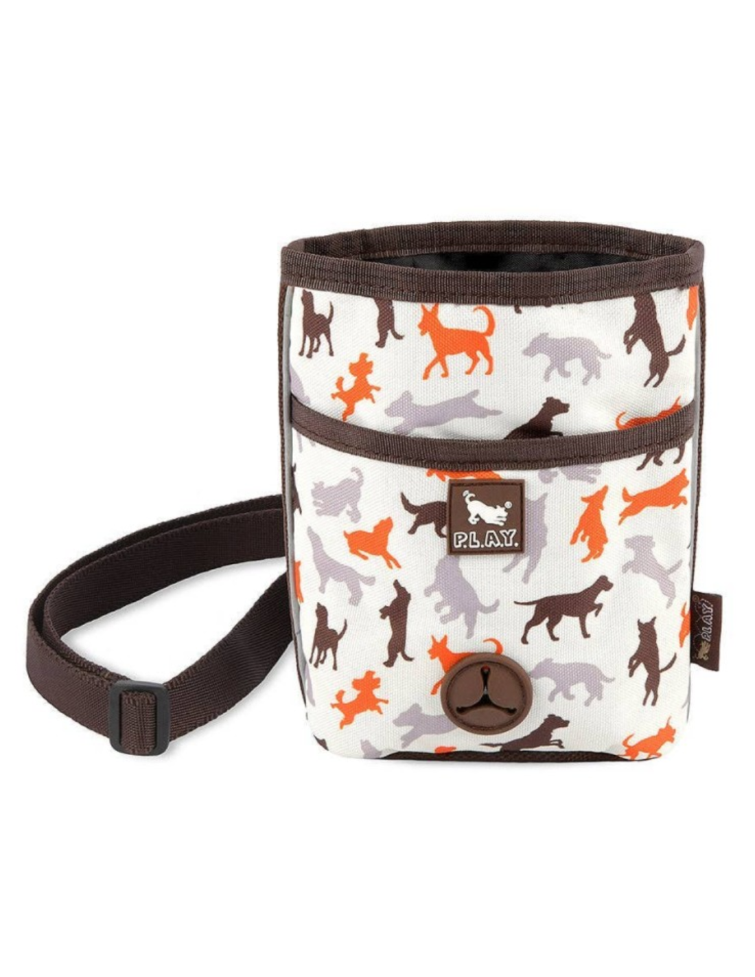 Functional, durable and tastefully designed, the Scout & About Deluxe Training and Poop Pouch is the go-to accessory for active humans and dogs. This deluxe multi-functional pouch comes with a spacious interior that holds treats, has a magnetic, easy access front pocket poop bag dispenser, a discreet back zip pocket for money and cards, and a built-in squeaker to capture your dog’s attention. Detachable and adjustable strap can be worn as a crossbody or as an over-the-shoulder training bag. Strap can also be used around the waist, or you can attach to your own belt with convenient belt loops for easy access to the dog waste bag holder. Sides are lined with 3M reflective stripes for evening strolls.