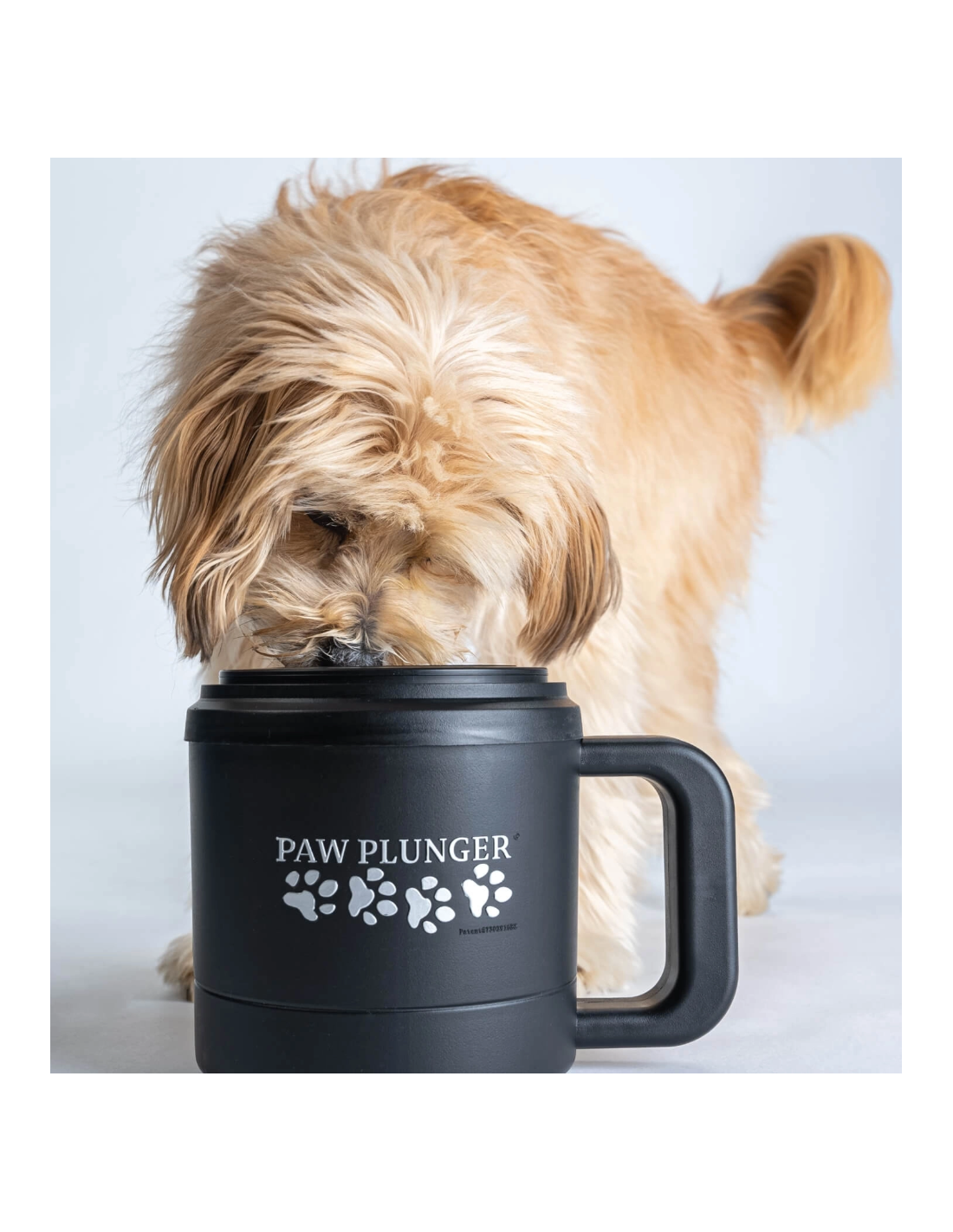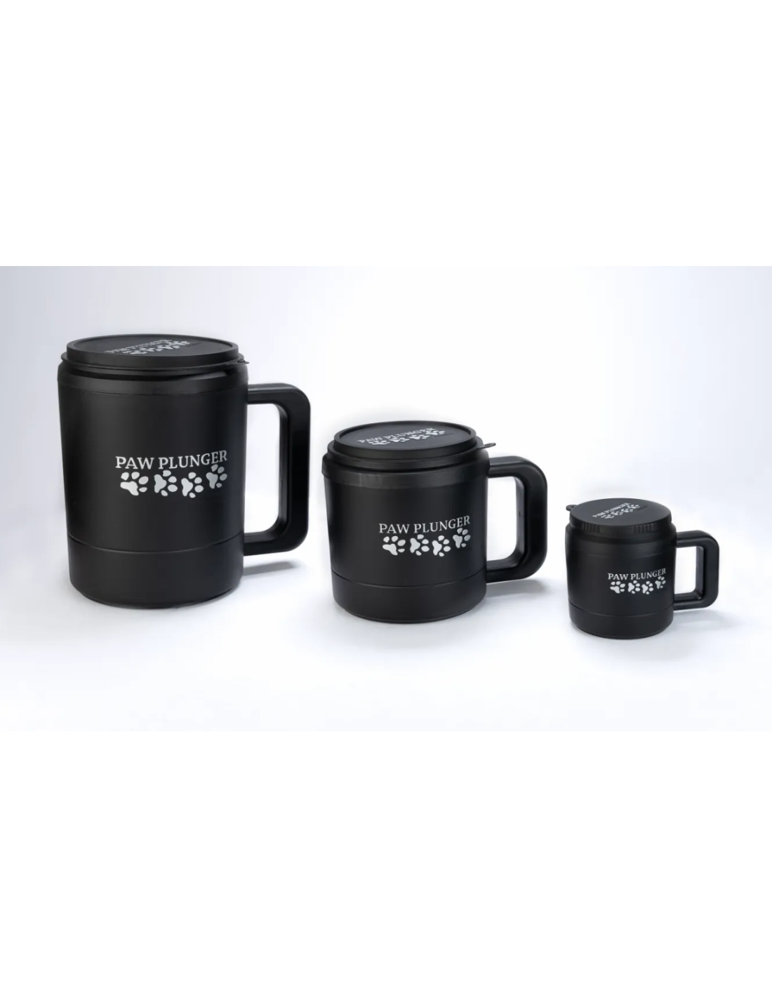 De Paw Plunger is dé oplossing voor modderpoten na een wandeling. In de stevige kunststof beker zit aan de binnenkant een tunnel van fijne kunststof borstelharen. Je vult de beker met handwarm water en dompelt vervolgens één poot tegelijk meerdere keren in de Paw Plunger. De borstelharen maken het vuil los, waarna je het vieze water simpelweg weggooit en de poot droogt.