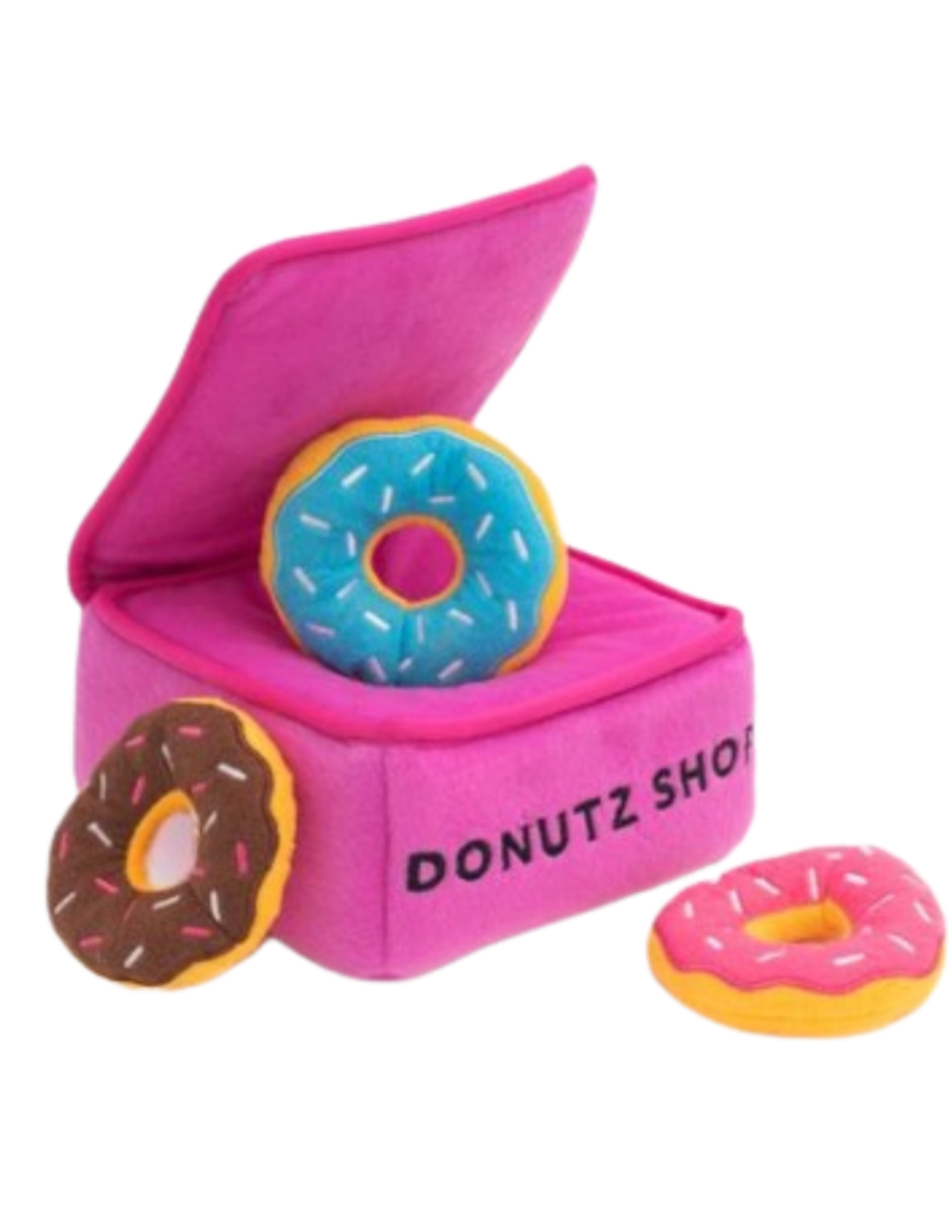 De ZippyPaws Zippy Burrow Donutz Box is interactief speelgoed waar honden plezier hebben met het zoeken naar piepende donuts binnenin een doos.