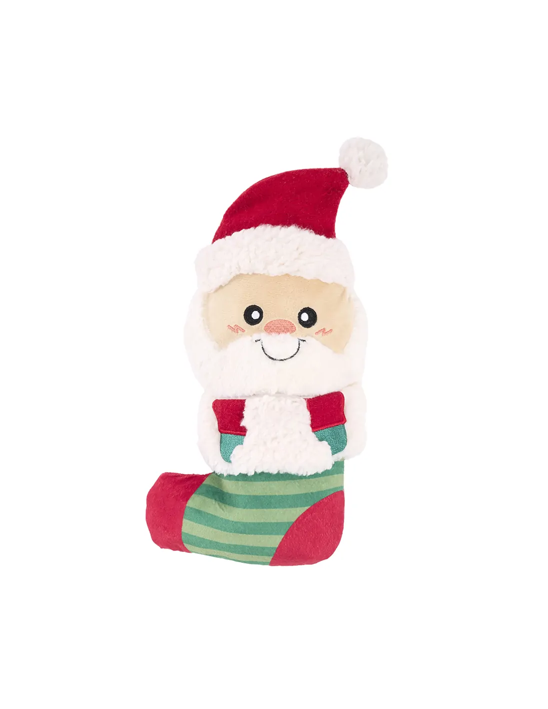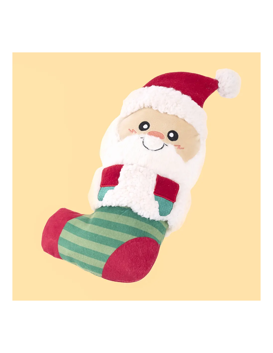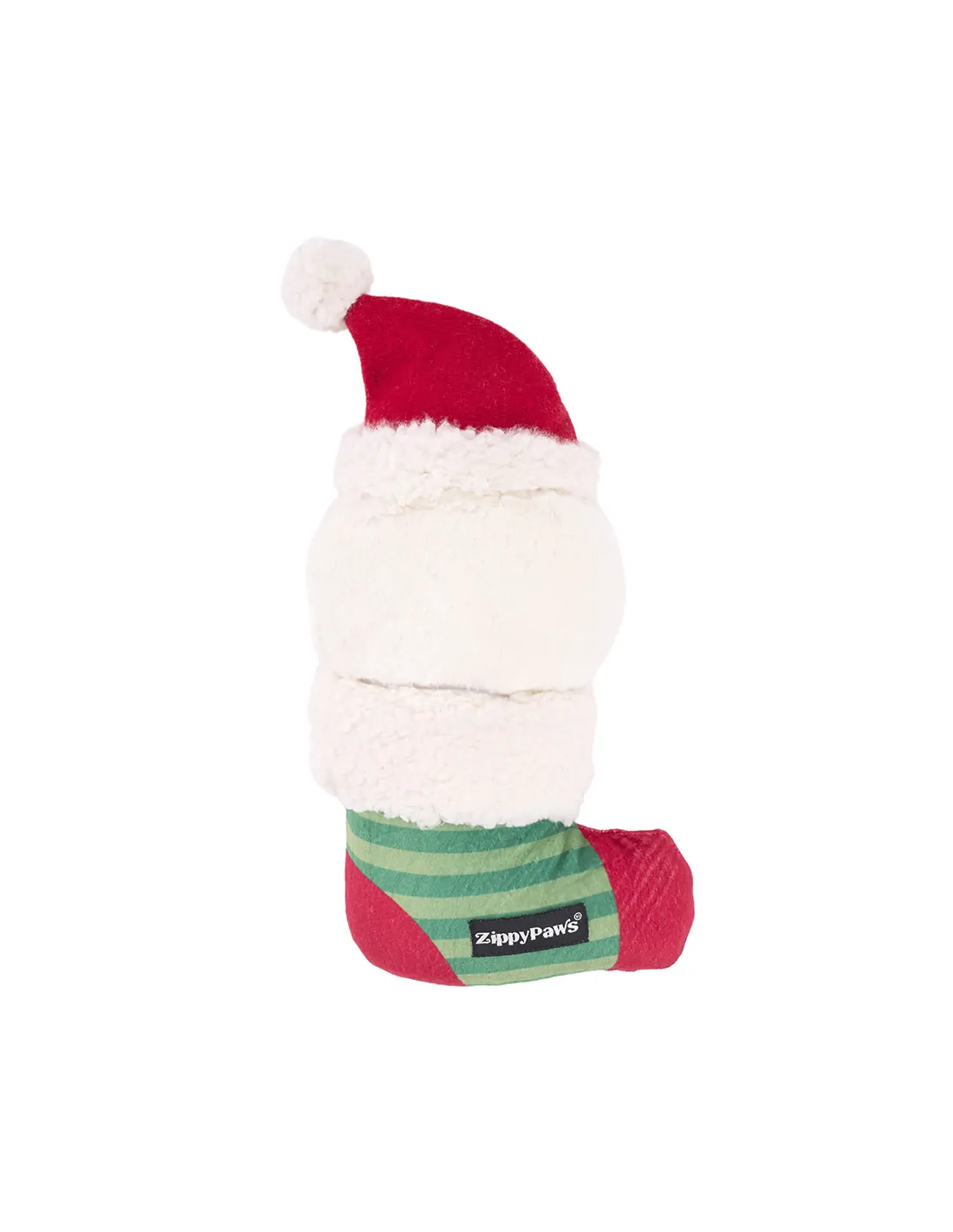 Vier de feestdagen met de ecoZippy Holiday Stocking Santa knuffelhond! EcoZippy speeltjes van ZippyPaws geven een milieuvriendelijke draai aan de speeltijd van je hond! Gemaakt van duurzame, milieuvriendelijke natuurlijke materialen, zijn ecoZippy speeltjes perfect om met je milieubewuste hond te spelen. De ecoZippy Holiday Stocking Santa heeft sherpa-details met kreukels aan de binnenkant. Geborduurde handen steken uit de kous. Inclusief 1 ronde pieper en gevuld met vulling. ZippyPaws gebruikt vulling van 100% gerecycled materiaal.