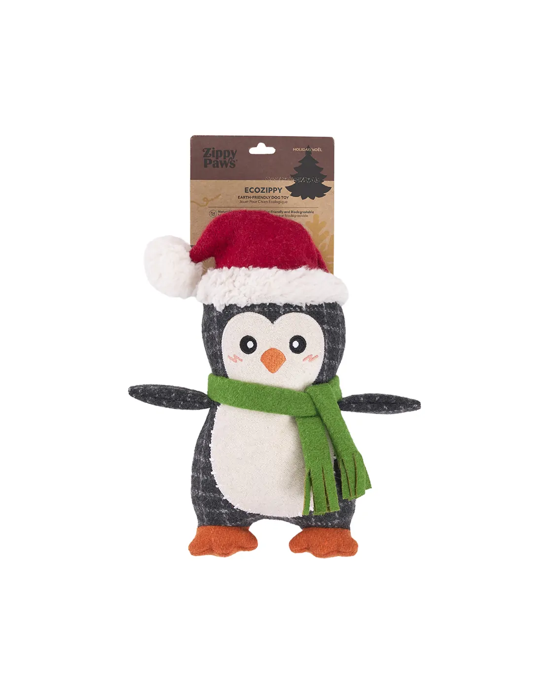 Voor feestelijk en milieuvriendelijk vakantieplezier is de ecoZippy Holiday Cotton Cuddler Penguin het perfecte cadeau voor je hond! EcoZippy-speeltjes van ZippyPaws geven een milieuvriendelijke draai aan de speeltijd van je hond! Gemaakt van duurzame, milieuvriendelijke natuurlijke materialen, zijn ecoZippy-speeltjes perfect om met je milieubewuste pup te spelen. De schattige Holiday Cotton Cuddler Penguin-knuffel heeft een ronde pieper, decoratieve stiksels, een hoed met sherparand en een kreukelige sjaal. Bevat vulling. ZippyPaws gebruikt vulling van 100% gerecycled materiaal.